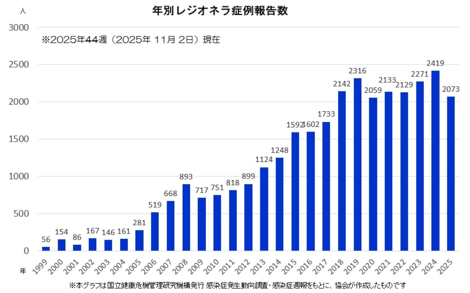 ■2025年 44週まで(2024.12.30 ~ 2025.11.2)のレジオネラ症感染者数