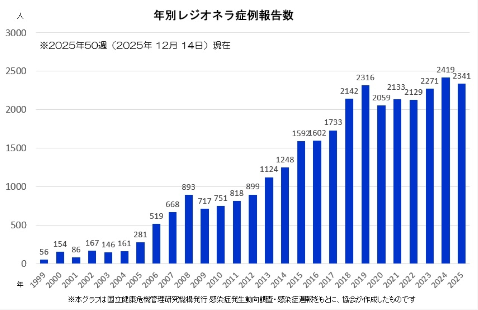■2025年 50週まで(2024.12.30 ~ 2025.12.14)のレジオネラ症感染者数