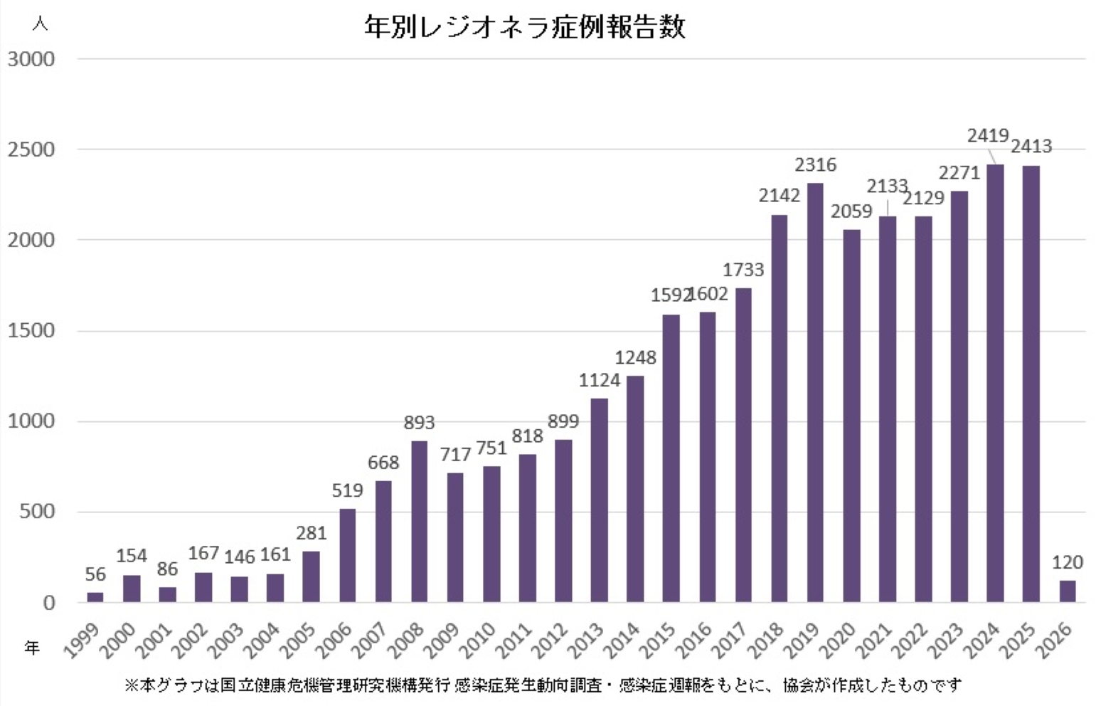 ■2026年 3週まで(2025.12.29 ~ 2026.1.18)のレジオネラ症感染者数