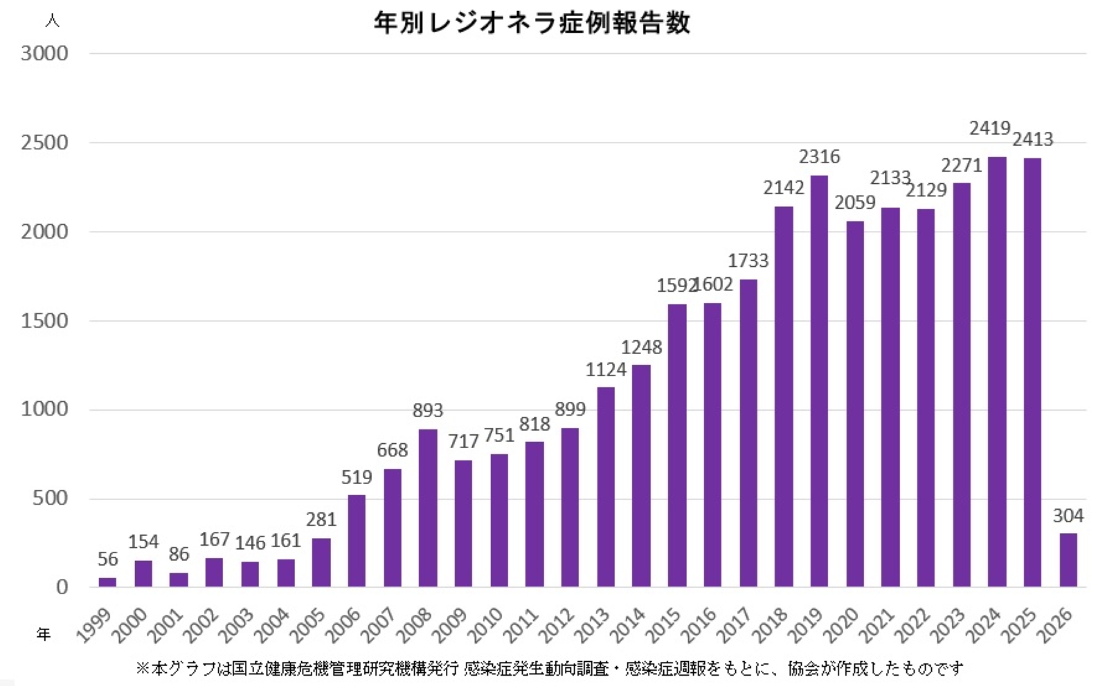 ■2026年 9週まで(2025.12.29 ~ 2026.3.1)のレジオネラ症感染者数