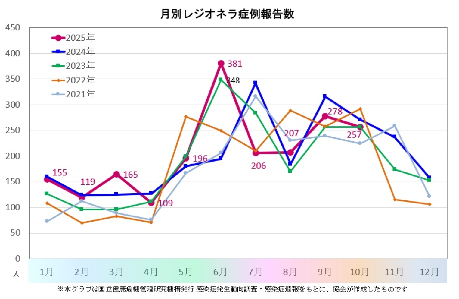 このページのグラフは、国立健康危機管理研究機構(JIHS)が公表する感染症発生動向調査週報(IDWR)のデータに基づき、協会が作成したものです。