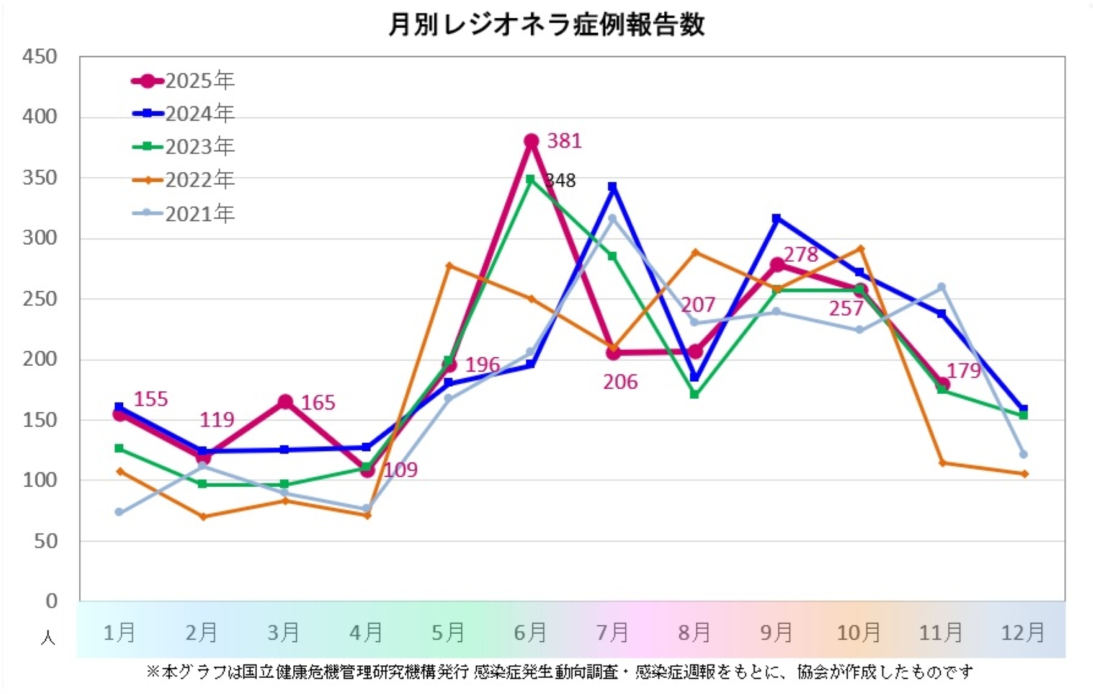 ■2025年 50週まで(2024.12.30 ~ 2025.12.14)のレジオネラ症感染者数
