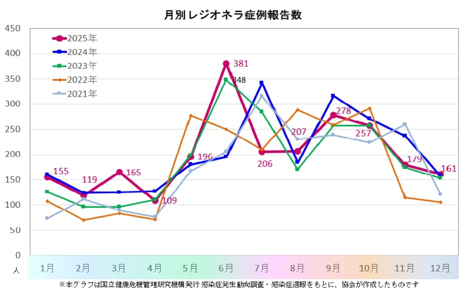 このページのグラフは、国立健康危機管理研究機構(JIHS)が公表する感染症発生動向調査週報(IDWR)のデータに基づき、協会が作成したものです。